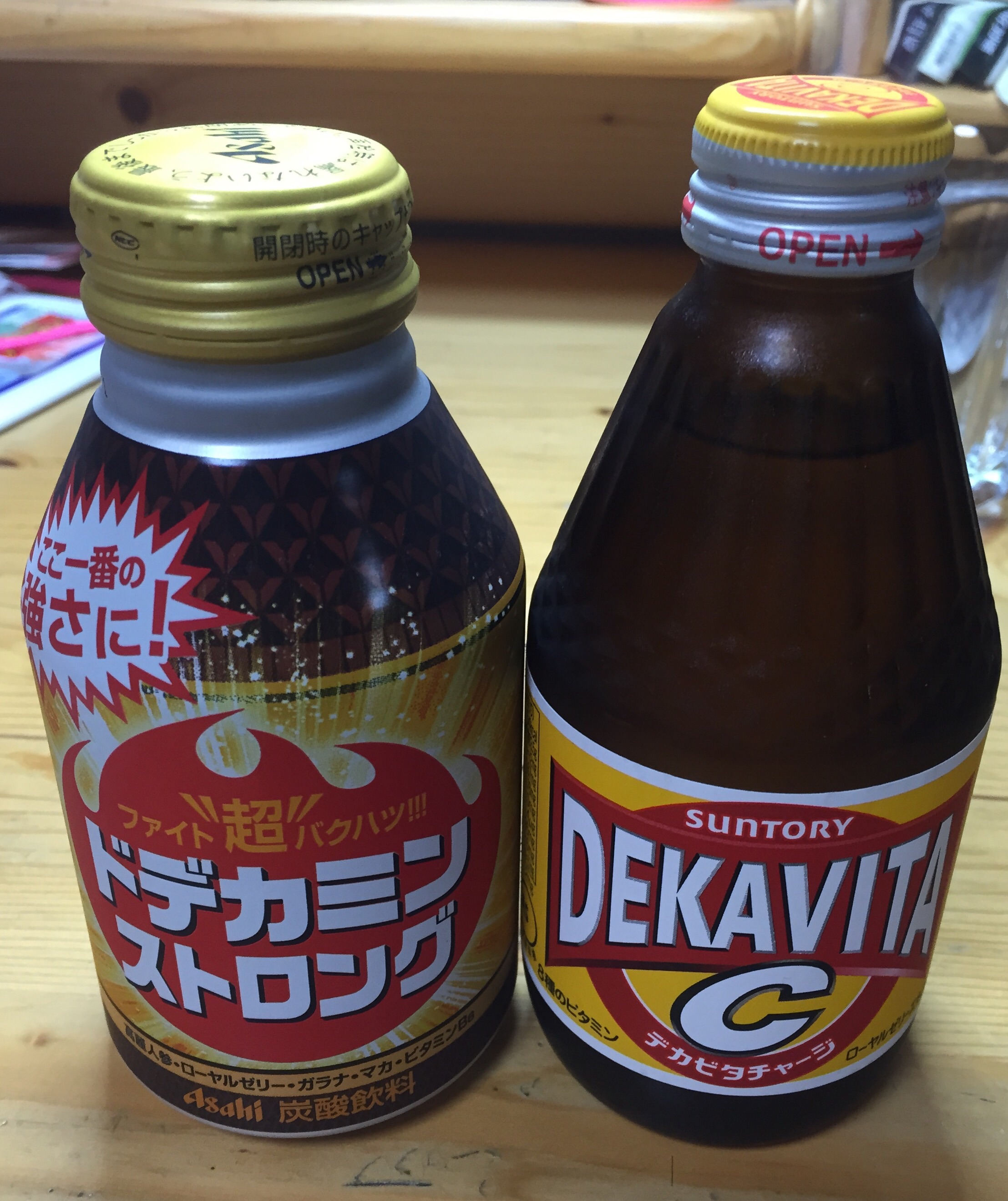 ドデカミン(アサヒ飲料株式会社)とデカビタチャージ(サントリーフーズ(株))を飲み比べ。
