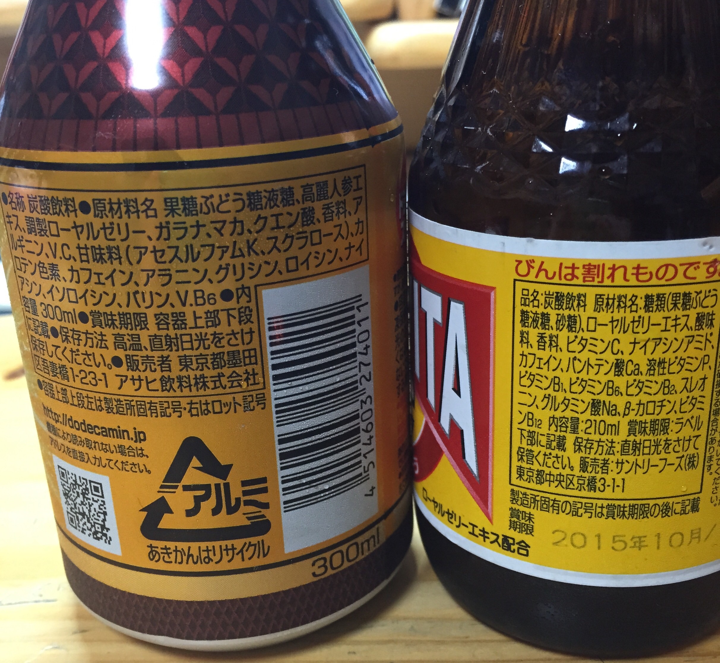 因みに、賞味期限はデカビタが10月、ドデカミンが12月(4月購入)でした。